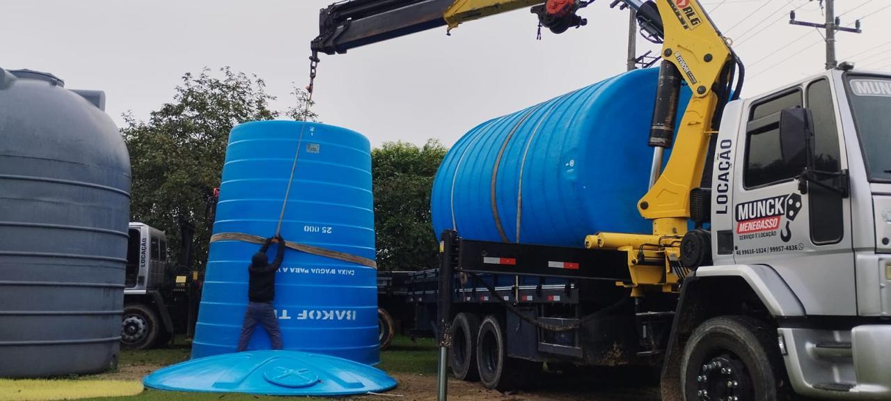 O Serviço Autônomo Municipal de Água e Esgoto (SAMAE) está promovendo importantes melhorias no sistema de abastecimento de água em nossa cidade. Nesta etapa das obras, dois novos reservatórios de água tratada, com capacidade de 25 mil litros cada, estão sendo instalados no Loteamento Laranjeiras.